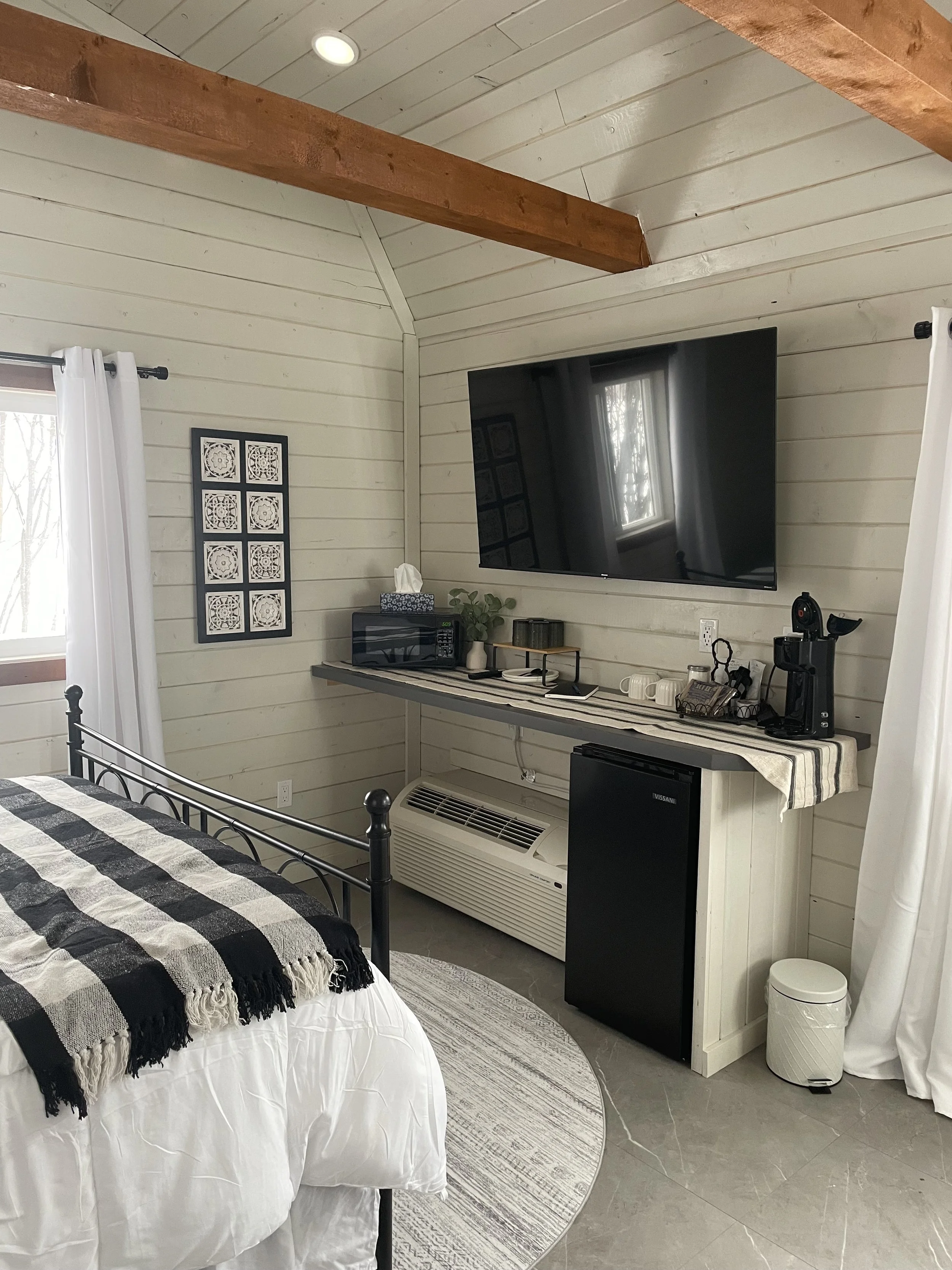 With a dreamy black-and-white design finished in warm caramel trim, the Cottonwood invites you to relax with a hot drink in a cozy corner on the prairies. Comfortable, stylish, and offered at an unbeatable price, it’s the perfect choice for your next stay.