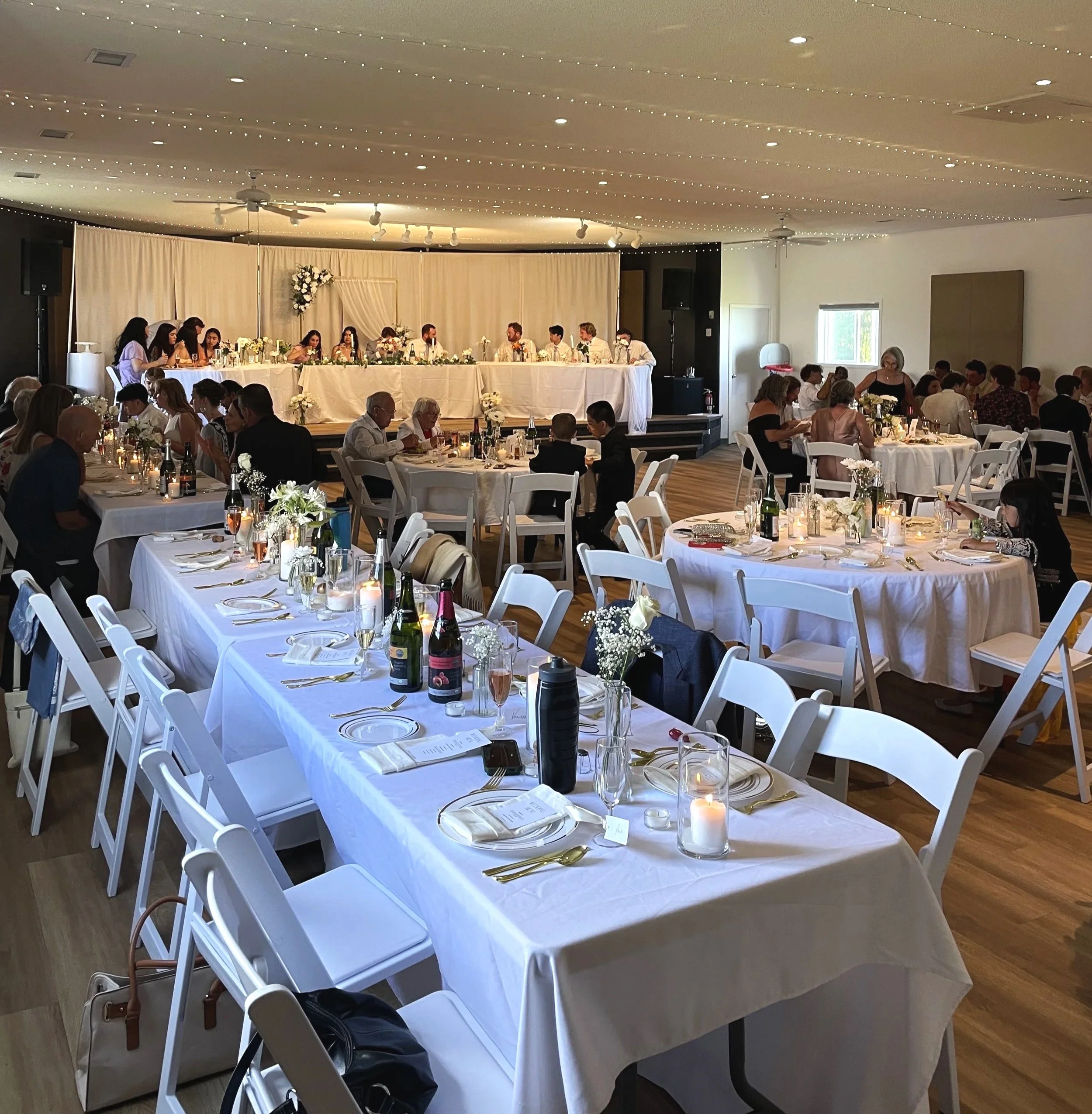 Our newly renovated residential-style kitchen offers a versatile and inviting space perfect for meal prep, caterer use, or hosting a relaxed cocktail hour. Designed with both function and flow in mind, it can comfortably accommodate seated dining for up to 60 guests.